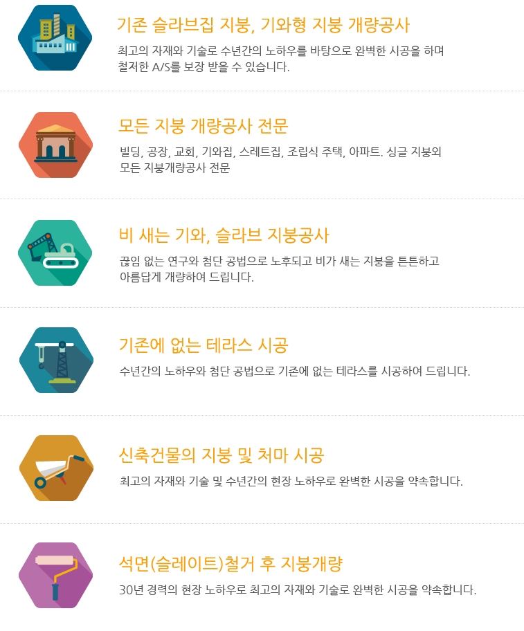 • 학교, 아파트, 빌라, 주택 , 빌딩, 관공서, 공장, 상가, 창고, 돈축사, 신축건물 외 지붕개량은 지붕전문회사에서!